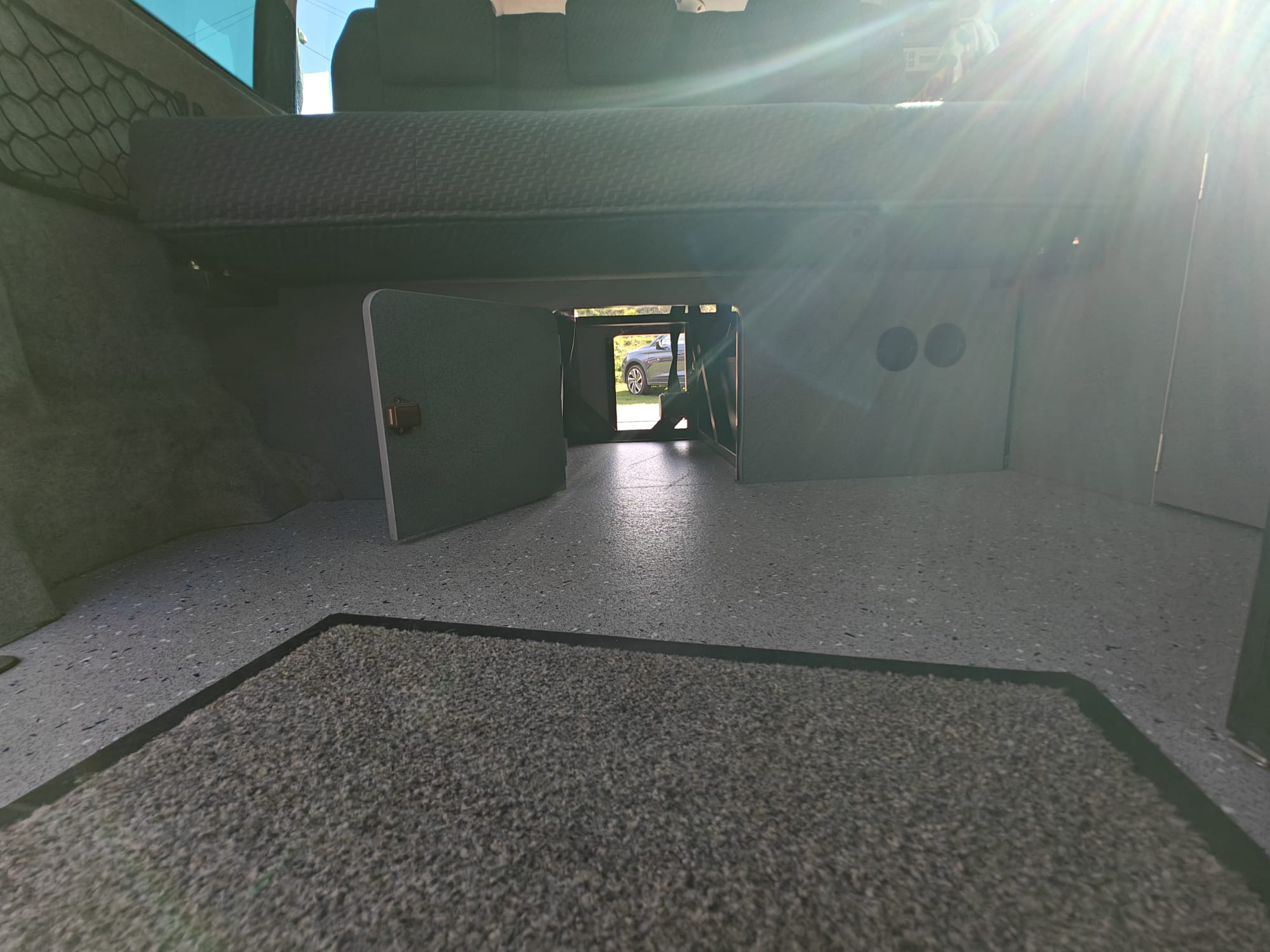 - 2 hitches on interior of sliding door suitable for hitching dogs, luggage or bikes